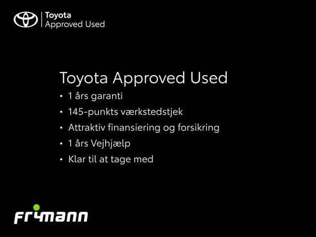 Toyota Approved Used er brugte biler med garanti. Hver bil gennemgår et omfattende 145-punkts tjek af vores dygtige teknikere på Danmarks bedste værksted. Dermed er du sikret en bil af høj kvalitet med Toyota Approved Used -12 måneders garanti, Toyota Vejhjælp og mulighed for attraktiv finansiering og forsikringer.