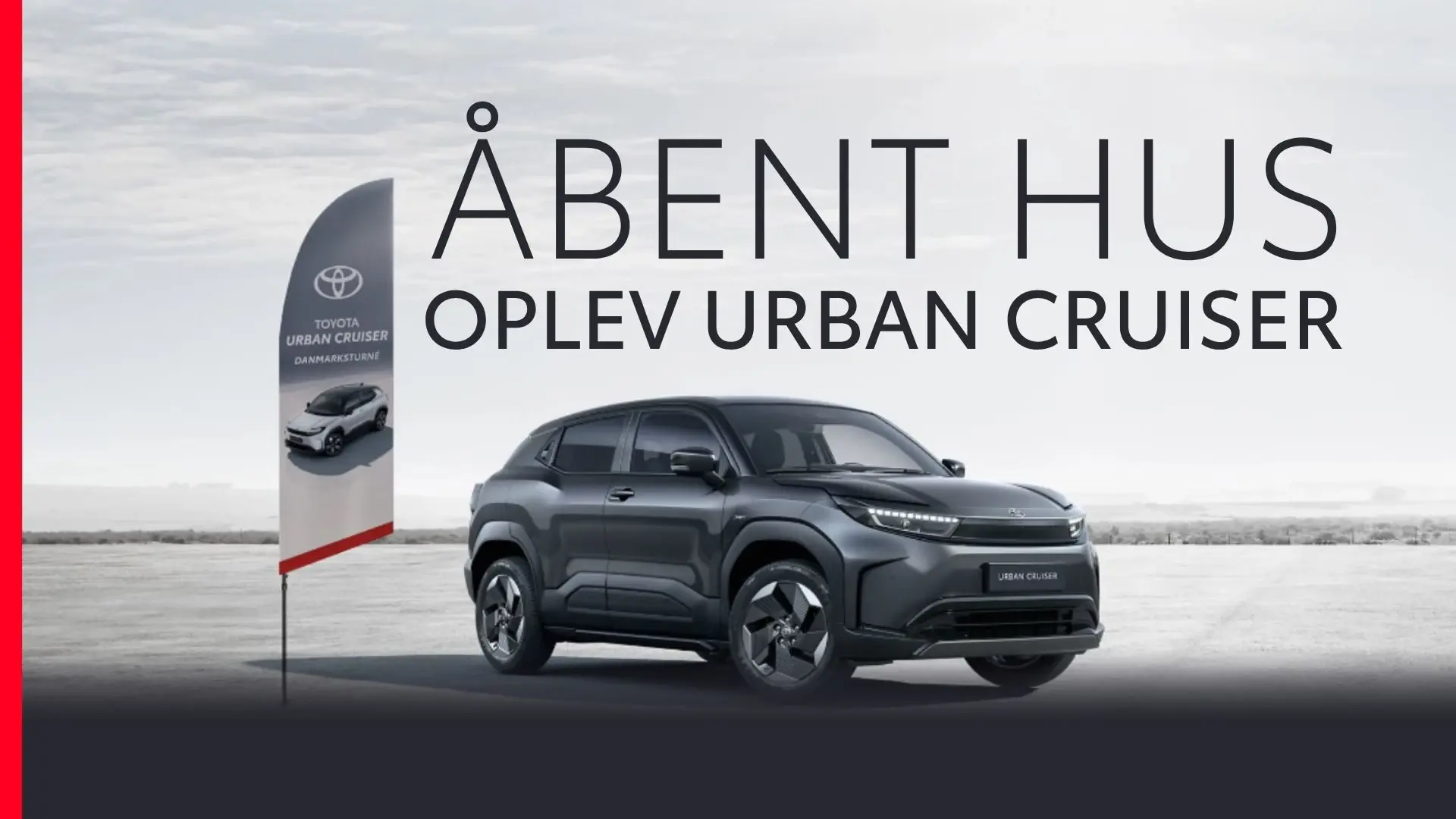 Toyota Urban Cruiser er på roadshow rundt i Danmark og stopper op hos Frimann Biler i Nykøbing F.. Her er både Maribo og Nykøbing F. klar til at give ALLE en helt igennem elektrisk oplevelse. Og der er mere - for vi serverer også en stærk 0% rentekampagne fra Toyota på hele tre nye elbiler - Urban Cruiser plus C-HR+ og den nye bZ4X.